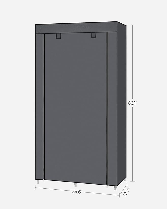 SONGMICS Portable Closet, Clothes Storage Organizer with 6 Shelves, 1 Clothes Hanging Rail, Non-Woven Fabric Closet, Metal Frame, 34.6 x 17.7 x 66.1 Inches, Grey URYG84GY