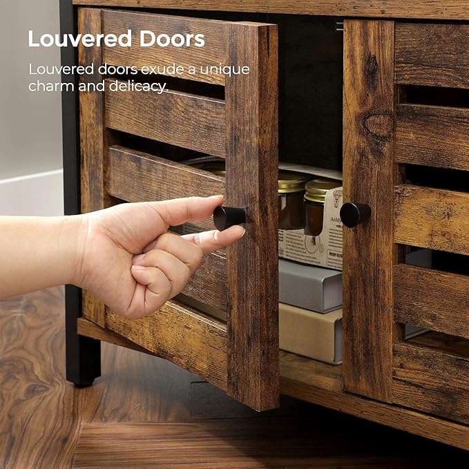VASAGLE LOWELL Bookshelf, Storage Cabinet with 3 Shelves and 2 Louvered Doors, Industrial Bookcase in Living Room, Study, Bedroom, Multifunctional, Rustic Brown ULSC75BX