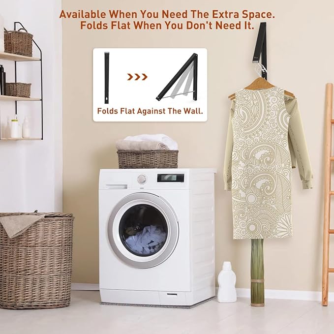 Laundry Room Clothes Rack - Wall Mounted Retractable Folding Clothes Hanger Drying Rack for Laundry Room Closet Storage Organization, Aluminum, Easy Installation (Black)
