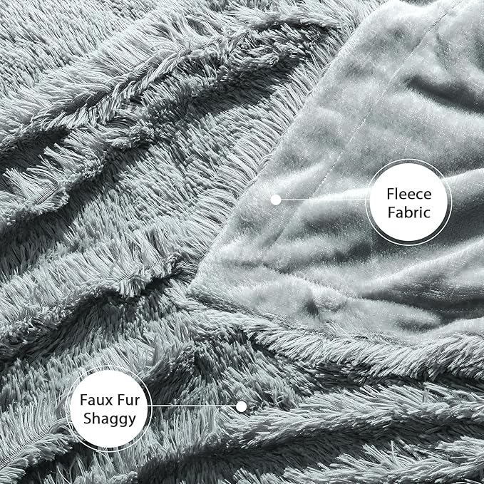 Tuddrom Decorative Extra Soft Faux Fur Blanket Queen Size 80"x90",Solid Reversible Fuzzy Fluffy Cozy Plush Fleece Comfy Microfiber Fur Blanket for Couch Sofa Bed,Gray Blue