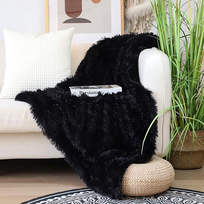 - BLANKET SIZE & ELEGANT COLOR --78"x 90" (200x230 cm) This throw blanket is suitable for chair and couch as a decorative fur blanket to keep warmth.Perfect for covers feet up to shoulder level for snuggling or relaxing. black is true black color without impurities.Classic and Elegant.Keeps couch and bed spotless.