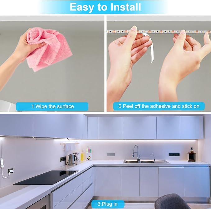 - Widely Used: With strong self adhesive, just clean the place to be installed and paste it. Only take few minutes to install by yourself, then you can enjoy the lighting for a super long time. Suitable for kitchen, cabinet, closet, counter, shelf, desk, TV back, showcase and corner.