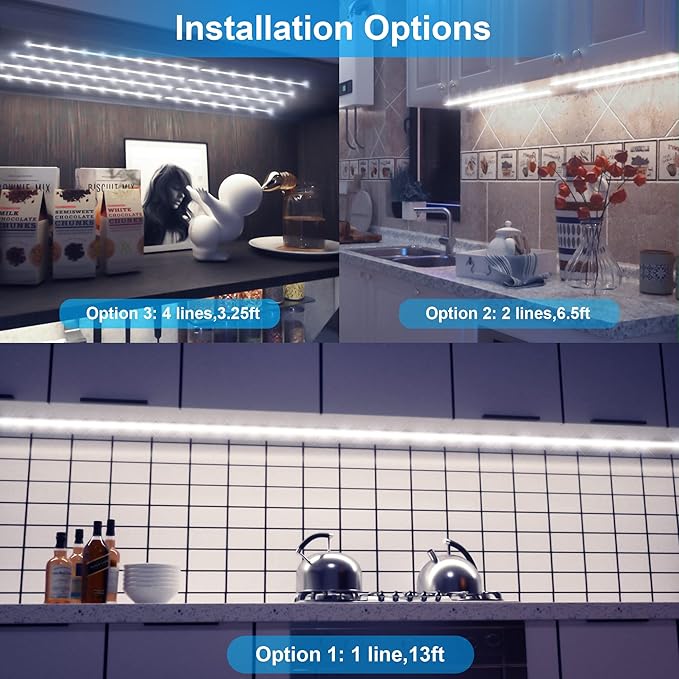 LAFULIT 8 PCS Under Cabinet Lighting Kit, Bright Under Cabinet Lights, Flexible Led Strip Lights with Remote and Power Adapter, for Kitchen Cabinets Shelf Desk Counter, 6000K Daylight White, 13ft