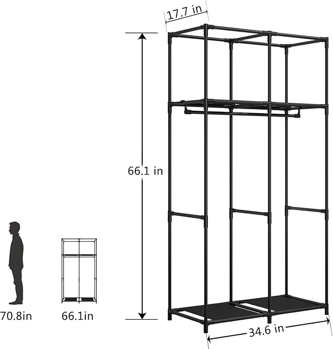 - Large Capacity:34.6 "long x 17.7" wide x 66.1 "high,large capacity storage closet for clothing, sheets, shoes, scarves and more, perfect for organizing your storage space.
