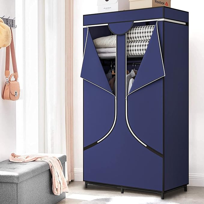 34 Inch Portable Wardrobe Closet Clothes Organizer with Metal Shelves and Non-Woven Fabric Durable Closet Storage Organizer for Bedroom (34 Inch, Blue)