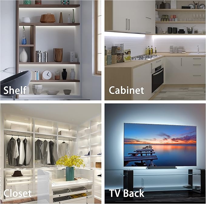 - Widely Used: With strong self adhesive, just clean the place to be installed and paste it. Only take few minutes to install by yourself, then you can enjoy the lighting for a super long time. Suitable for DIY your kitchen, cabinet, closet, counter, shelf, desk, TV back, showcase, stairs, corner and anywhere you want. Please contact us with any question, we will give you a satisfied reply within 24 hours.