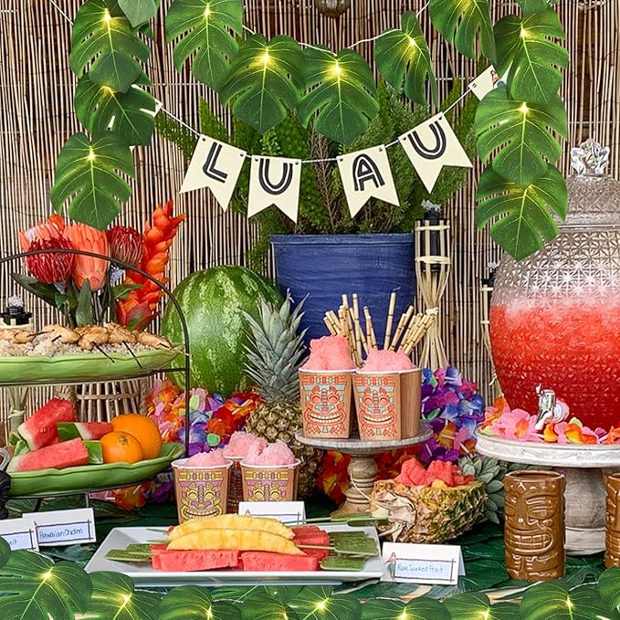 - Widely Application:This tropical artificial plants leaves string light for table decorations, luau table skirt,diner plate decorations, wall decorations, backdrop decorations, art gallery,Party decorations, skirt or cloth decorations,Craft Supplies,Restaurant Decor, Concession Stands,Juice bars,Fast Food Shop.Give you a different sense of visual impression