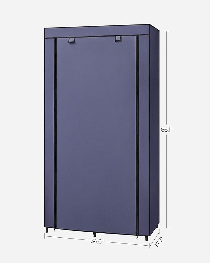 SONGMICS Portable Closet, 34.6 Inch Large Capacity Wardrobe Closet Organizer with Fabric Cover, Hanging Rods and Shelves, 34.6 x 17.7 x 66.1 Inches, for Bedroom, Living Room, Dark Blue URYG084I02