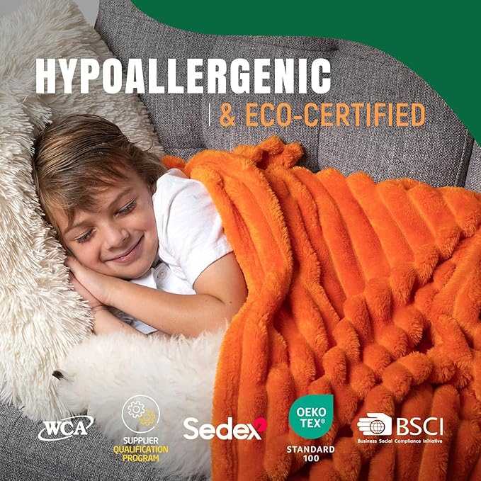 - Incredibly Cozy, Soft & Hypoallergenic » We offer the 50 x 60 inches burnt orange fleece blanket for women, men and kids. 20 % higher pile and 300 GSM warmth comfy make this blanket for bed super soft, absolutely non-toxic, hypoallergenic, and safe