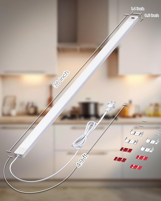 MYPLUS 36 Inch Under Cabinet Lights with Hand Wave, Under Counter Lighting 4000K Natural White,Dimmable,Plug and Play,LED Lights for Kitchen Cabinet, Cupboard, Closet, Desk