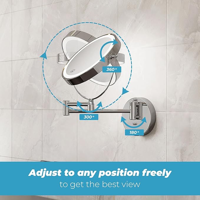 - 360° Rotation for Versatility: Experience the ease of 360° rotation with this makeup mirror. The bathroom magnifying mirror wall mount design allows for flexible positioning, making it an essential bathroom makeup mirror for detailed grooming tasks.