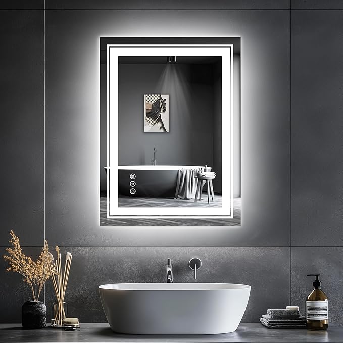 LED Bathroom Mirror, 20"x28" Mirror with Front and Backlit, Anti-Fog, Bathroom Vanity Mirror for Wall, Memory, Stepless Dimmable, Tempered Glass (Horizontal/Vertical)