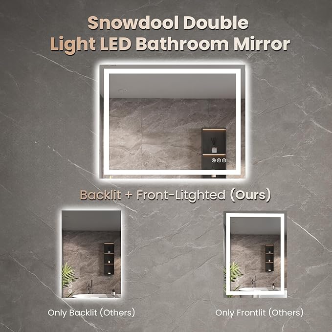 - [Backlit + Front Lit, Perfect Lighting]: Snowdool led mirror is featured both backlight and front light for superior brightness and even illumination. Ideal for makeup application, skincare routines, shaving, and styling with zero shadow or dark spot